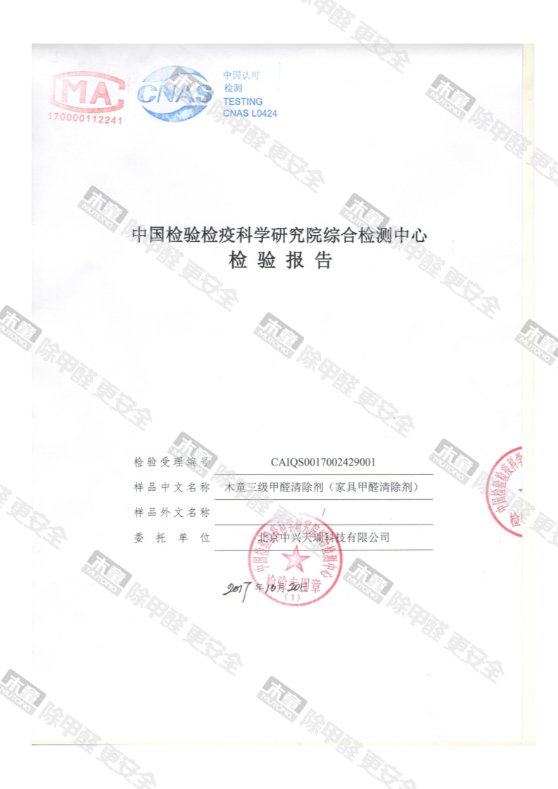 木童家具甲醛清除劑皮膚安全性檢測報告