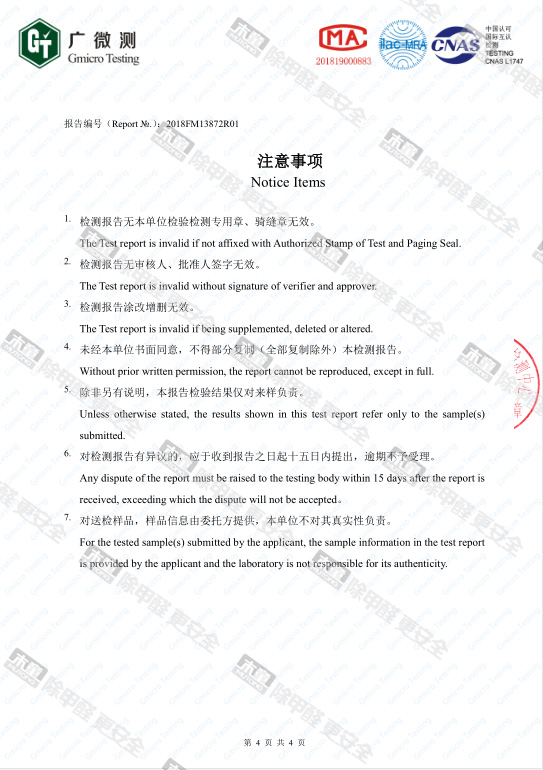 木童皮革除味劑甲醛去除率檢測(cè)報(bào)告